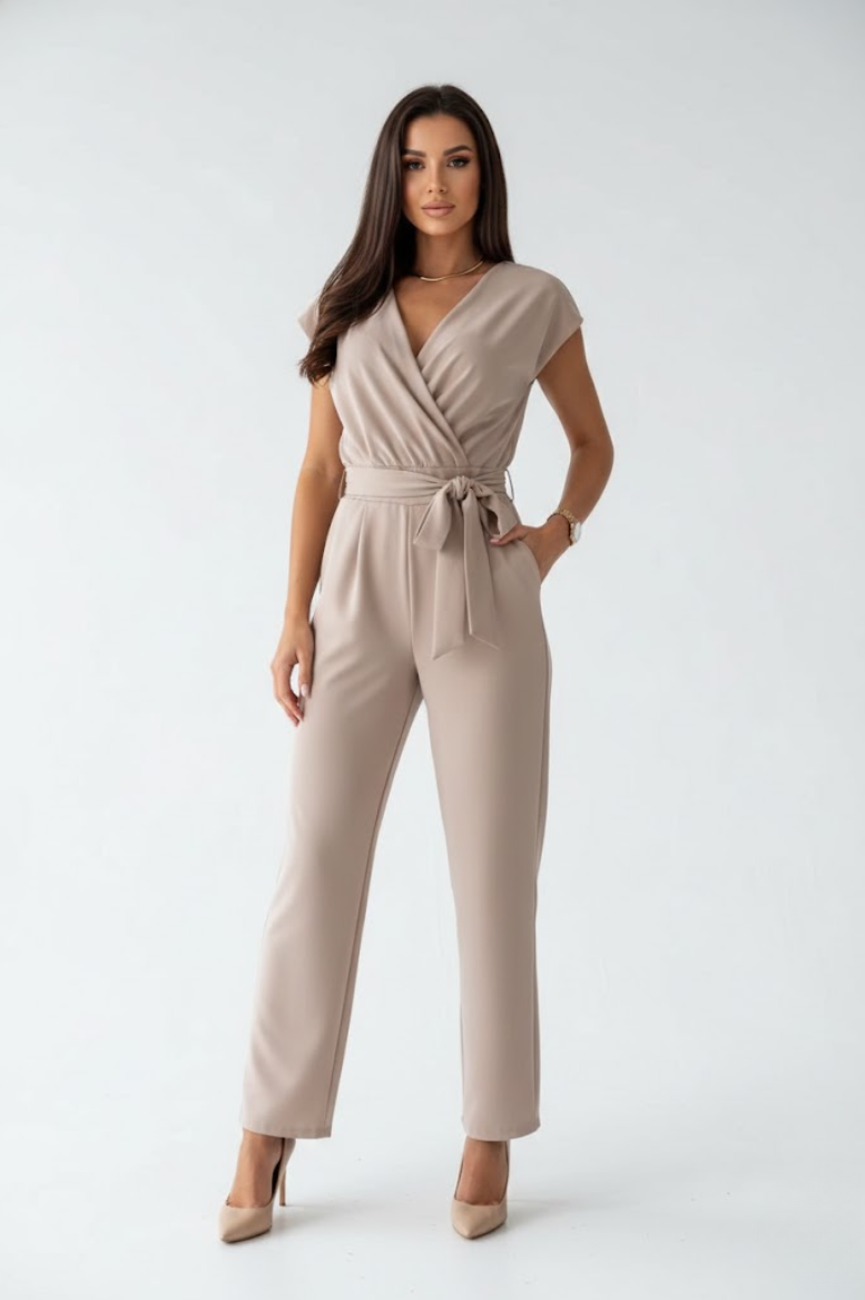 Solène jumpsuiten er skabt til at fremhæve din silhuet med lethed og finesse. Den krydsede V-udskæring og den markerede talje skaber et feminint og raffineret udtryk. Et design, der balancerer komfort og elegance – perfekt til enhver dag.