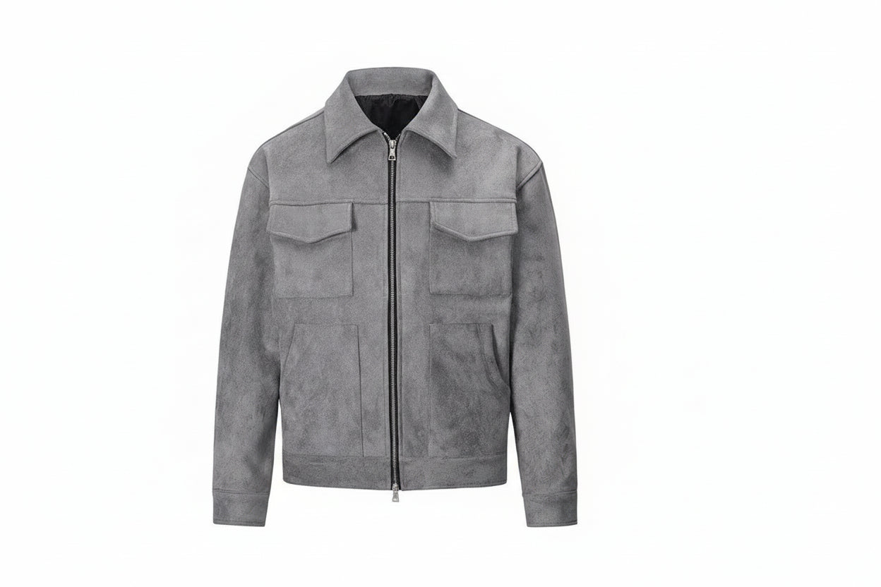 Stilren jakke i eksklusivt suede-look, der kombinerer moderne design med tidløs elegance.